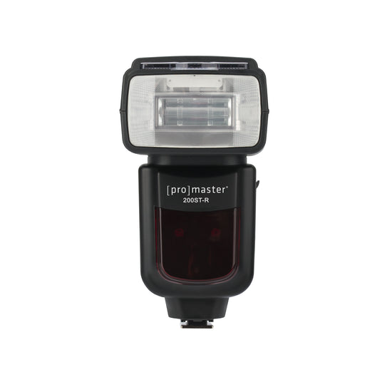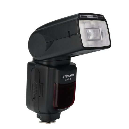 The ProMaster 200ST-R Speedlight works with your DSLR camera to provide powerful light, TTL exposure, and a wide range of advanced features including HSS high-speed sync, second curtain sync, and more. The articulating head can be adjusted for a variety of swivel and bounce positions; and is compatible with many light modifiers. The 200ST-R's powerful guide number of 60m/200ft combined with 200mm zoom head can illuminate subjects from afar. The built-in wireless 2.4 GHz radio TTL system provides expanded off-camera lighting options when commanded by a ProMaster ST1 transceiver. Wireless non-TTL (F1 and F2 modes) optical slave is also on-board. NOTE: Not compatible with mirrorless camera systems.