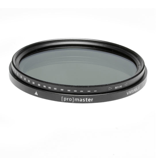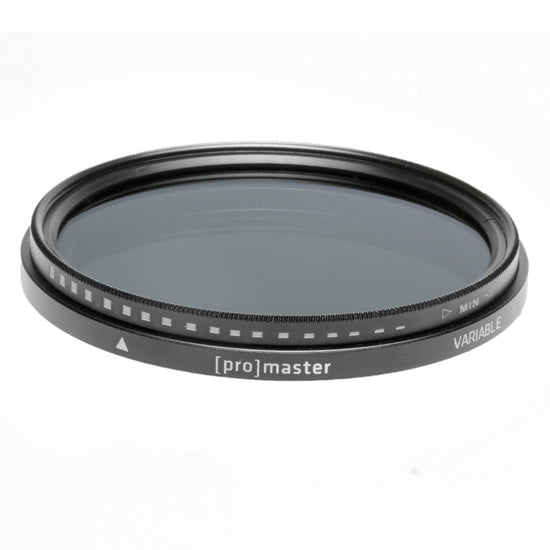 The ProMaster Variable Neutral Density filter allows total lighting control in virtually any environment. Completely variable from a factor of ND3 to ND400. This filter is available in sizes from 37mm - 82mm. Click on a filter size below to view its product page:
