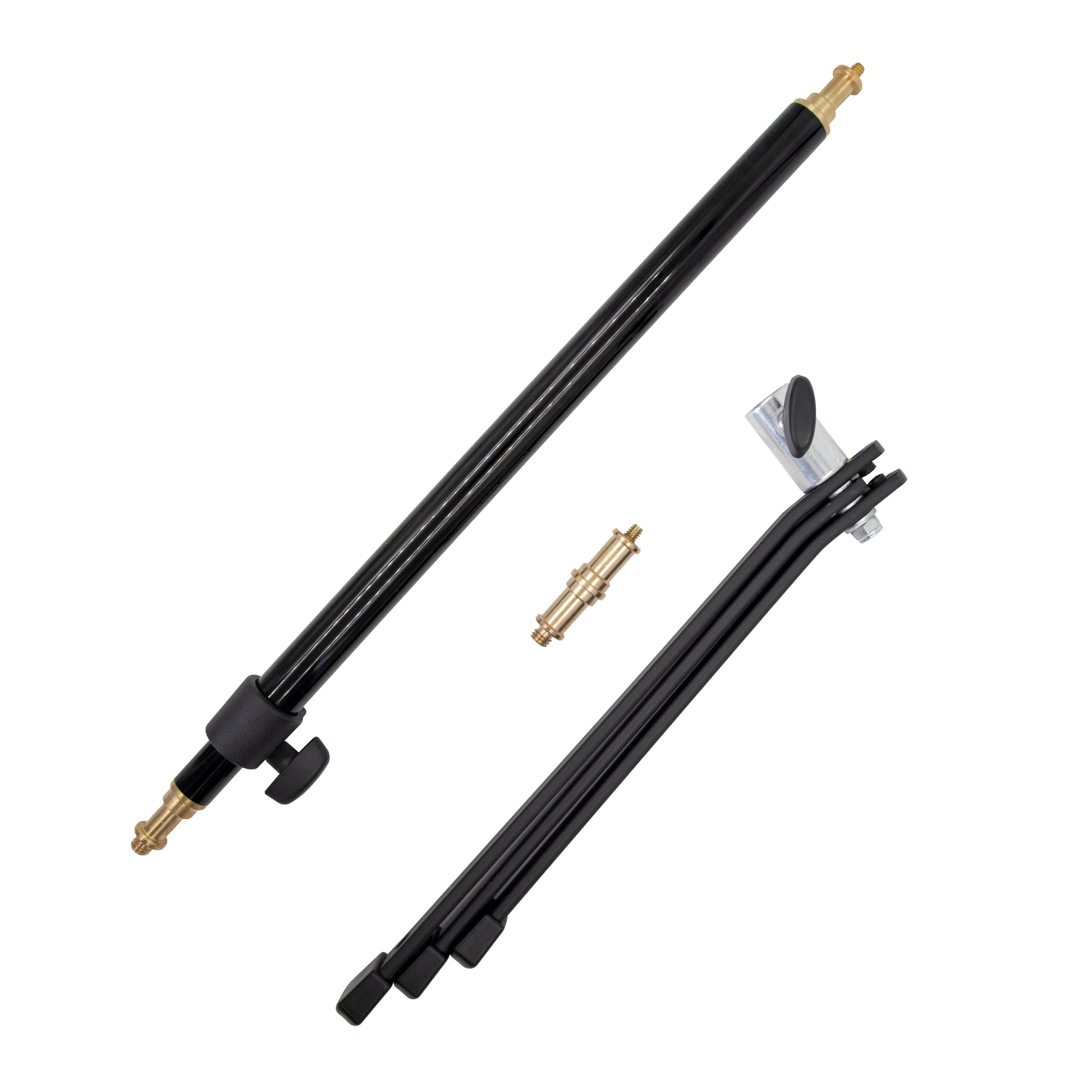 A variety of other grip equipment can connect directly to the base's 5/8" baby receiver. Both the stud and the column are double-sided and reversible, with a 5/8-inch stud with 1/4"-20 threads on one side and a 5/8-inch stud with 3/8"-16 threads on the other. This provides excellent flexibility for connecting a wide variety of gear to the stand. The entire kit folds down to just 18.5" and weighs less than three pounds. All three parts are detachable and the base folds, making the kit easy to break down for transport or storage.