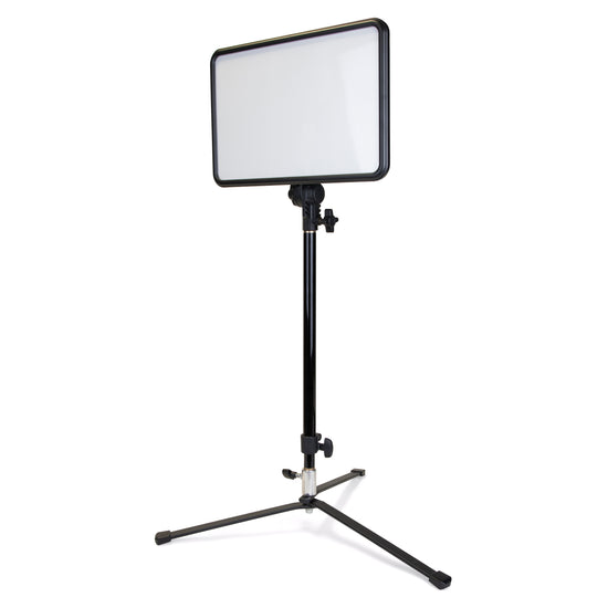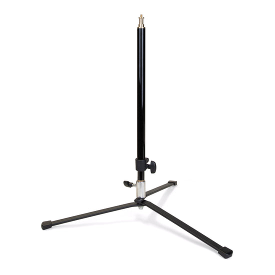 The versatile Backlight Stand with Folding Base achieves a working height of just 5.5 inches when mounting the included double-sided stud directly to the folding base. Alternatively, place the extendable column into the folding base for a mid-level height range of 21.5" to 34". The stand is suitable for holding a ringlight or vlogging equipment on or next to a tabletop, and can also facilitate low light placement for illuminating backgrounds, providing unique lighting angles, or lighting a subject from underneath or behind.