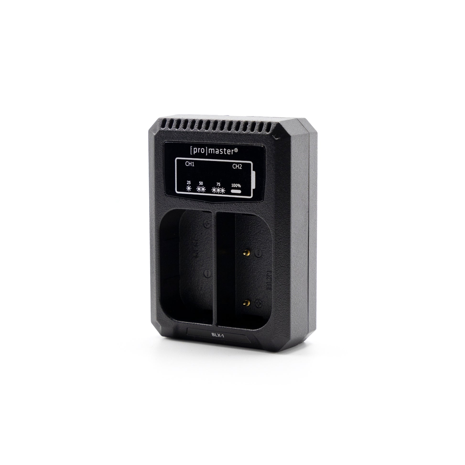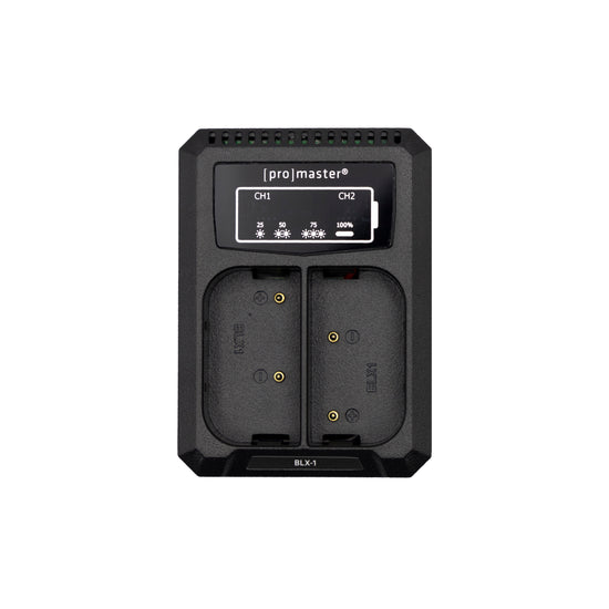 Two batteries are better than one, but only if they are charged and ready for action. The ProMaster Dually Charger for the OM System BLX-1 can charge two batteries simultaneously. It is very compact, and it offers the convenience of a built-in USB-A input cable that neatly stores in the base of the charger.